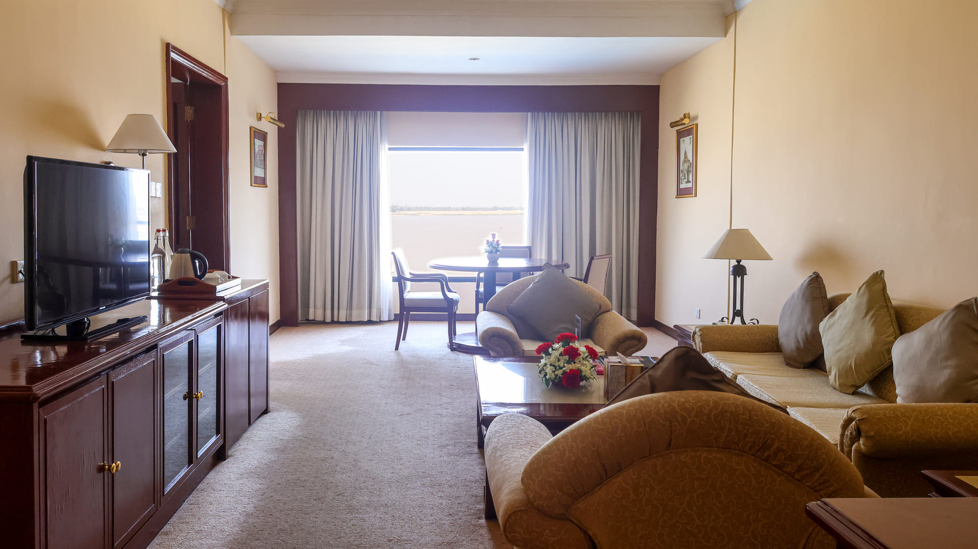 Our well-designed Junior Suites are equipped with modern facilities and are suitable for corporate clients, business executives and families. Featuring a large living and dining area and a spacious bathroom, Junior Suites are available on all floors of the Hotel. Each of our rooms and luxurious suites provides excellent panoramic views with both sunrise and sunset experiences of the vibrant city of Phnom Penh and the Mekong River.
